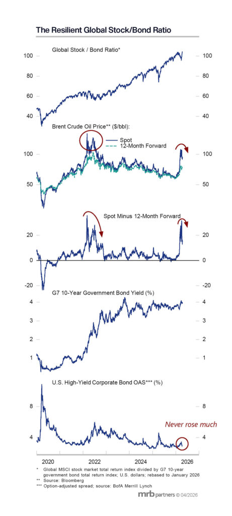 MRB has stood pat during the war in the expectation that the global stock/bond (S/B) ratio would eventually recover in due course and hit new highs. As noted in last Friday’s report “Already Returning To Complacency?” the S/B ratio has already fully recovered without the war actually reaching a resolution. This reflects strong corporate earnings and the ongoing accommodative monetary and fiscal policy backdrop. Moreover, the speed of the rebound reflects the entrenched bullishness amongst the investment community which is now betting that the energy shock will soon dissipate.