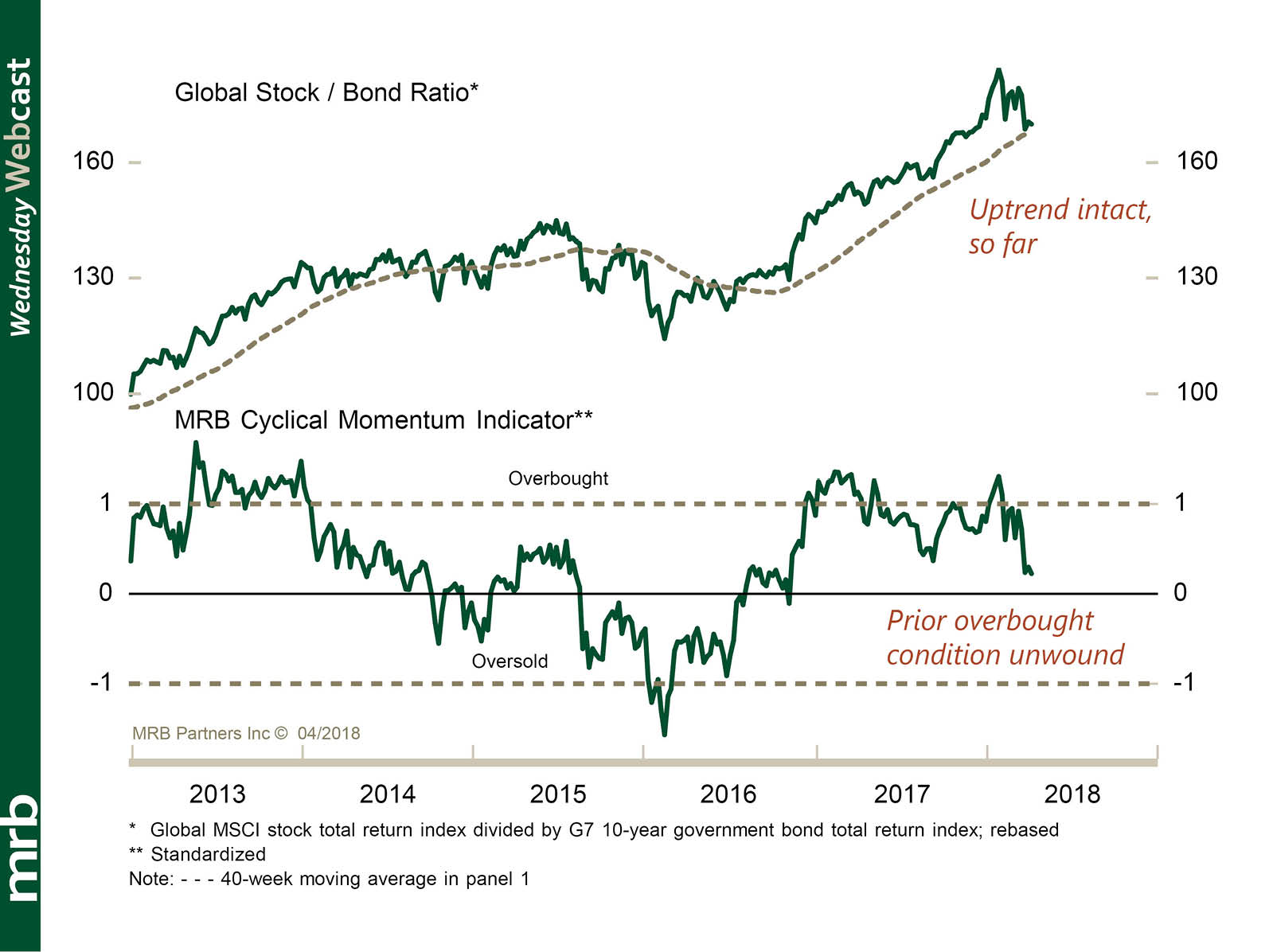 However, another upleg in the global stock/bond ratio should develop down the road, arguing against adopting a conservative cyclical portfolio posture. |
